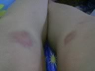 Then.. when i finished the very nice dinner, n was taking the plates n bowl to the back, Joanne slipped n fell. Yeah i did. Landed on the floor n broke a bowl. OMg its like the 105th time i broke something ya? tat time was a spoon, then wine glass, now bowl. tink Joanne gotta go plastic soon. teehee clumsy me. n ended up with 2 big bruises on my knee. Baby rubbed oilment on me n sayang me hehehehe :) But ouch he rubba so hard. :(:(:(:(:(:(:(:(