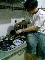 It was drizzling when we woke up..around 4. haha~ was tinking wot to do.. um.. wanted to watch movie..but then his dad wanted him to do trunking for the wires in the mahjong room. So ended up nailing the plastic trunks and my thumb.which hurts like shyt. Well at least i learnt something new today. Wahahah`